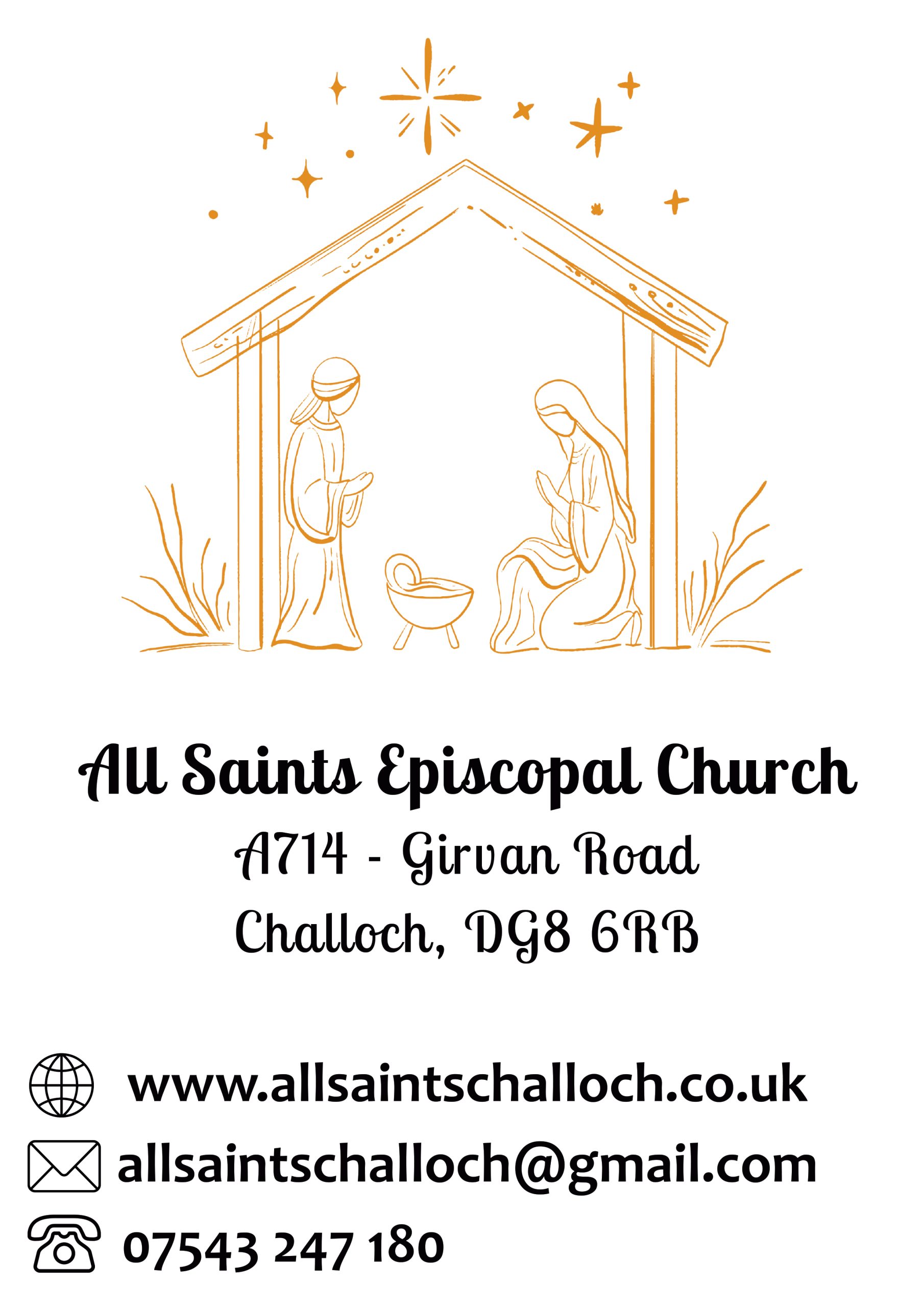 Satnav: the postal address is: All Saints Episcopal Church, Challoch, Newton Stewart, DG8 6RB