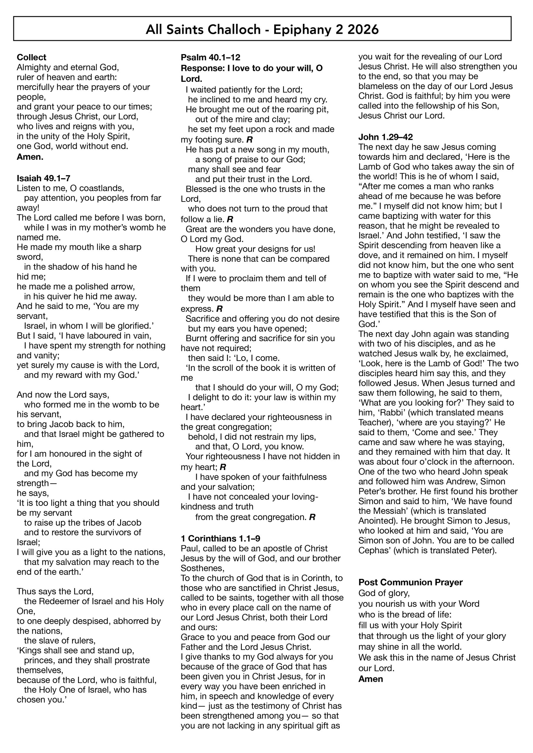 THE SUNDAY SERVICE – 18 JANUARY 2026 EPIPHANY 2