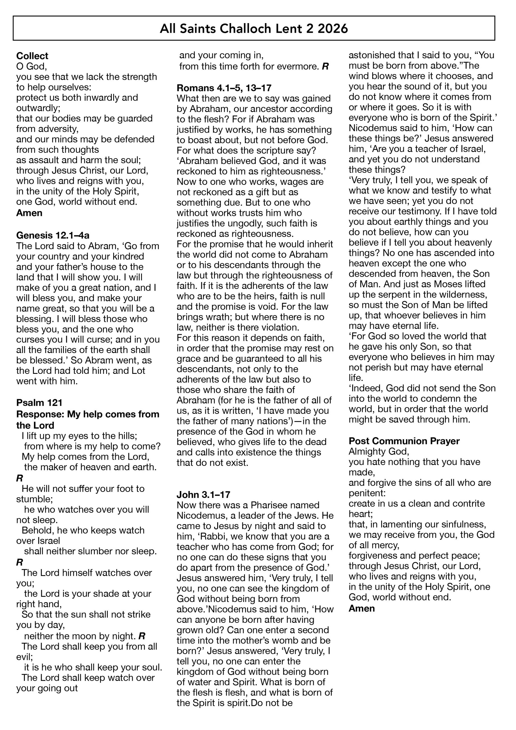 Next Sunday: Lent 3 at 10.30 am – A Sung Eucharist.